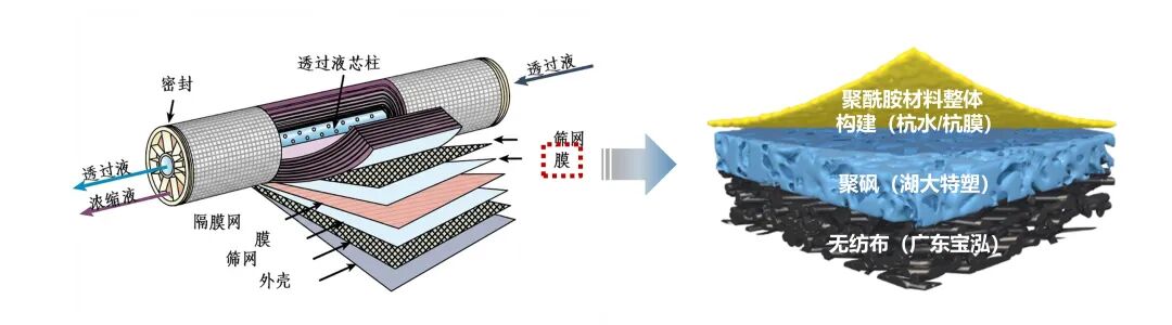 长期以来,高性能纳滤膜的关键原材料——无纺布与聚砜高度依赖进口,不仅提高了成本,更构成了产业链安全风险。面对国际技术壁垒,杭州水处理以高度的央企责任担当,积极响应国家水安全与供应链安全战略,牵头联合国内三家领先的无纺布、聚砜制造商及膜元件生产商,构建“基础研究-原材料开发-产业化制造-应用验证”的完整创新联合体。通过跨区域、跨学科深度协同,充分发挥各方核心优势,以“原料-材料-产品”的垂直整合模式,彻底消除关键原材料供应风险,从而打通从纤维原料、聚砜原料到膜元件制造的全产业链内循环。